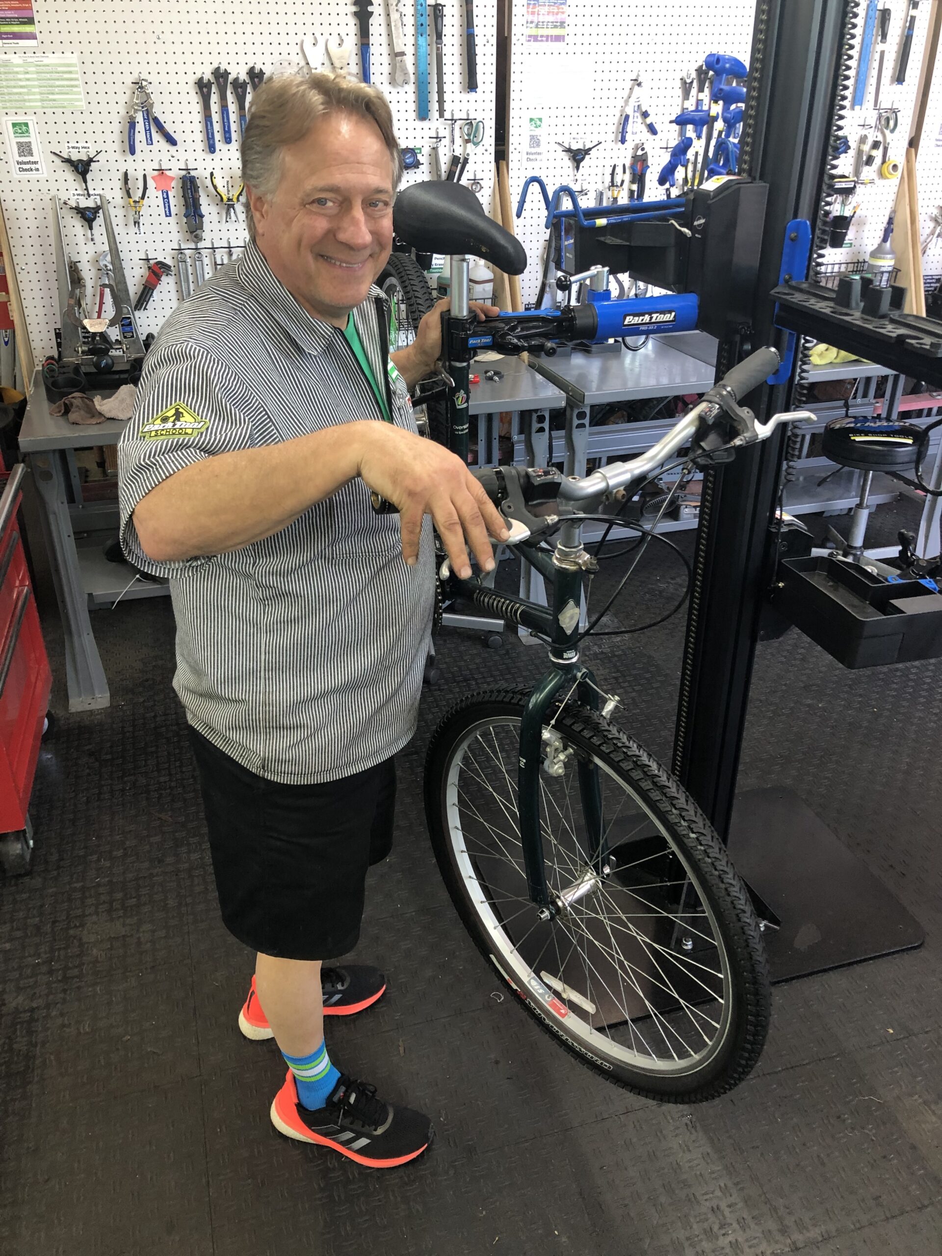 Jim’s passion for cycling began in his youth along the Pacific Coast Highway in Huntington Beach, California. He is a graduate of the United Bicycle Institute and holds certifications as a Bicycle Suspension Technician and DT Swiss Wheel Builder. He has taught over 200 students in Park Tool School